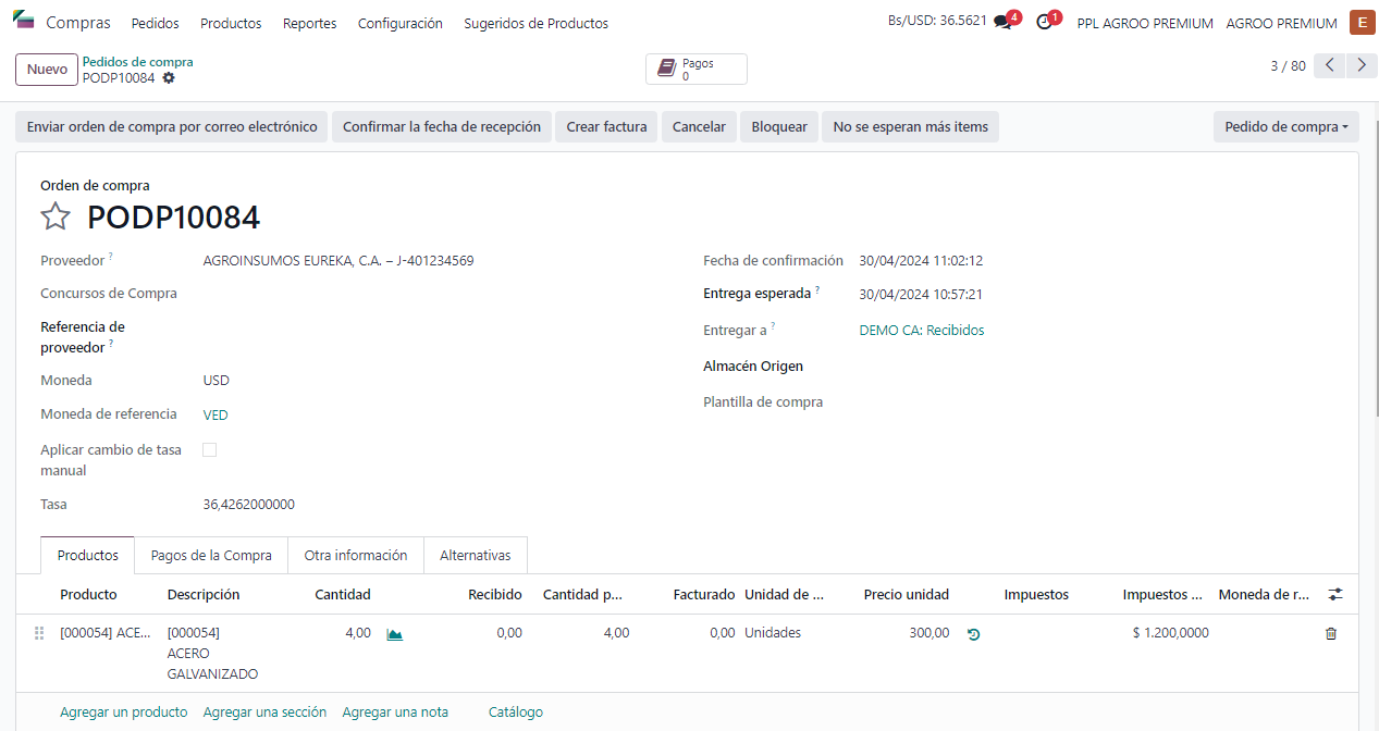 • Control de facturas: Facilita la conciliación de las facturas recibidas con los pedidos realizados para garantizar la correcta facturación y pago. Está Integrado con contabilidad y permite sincronizar automáticamente la información de compras con el sistema contable de la empresa para agilizar el proceso de registro y seguimiento de los gastos.