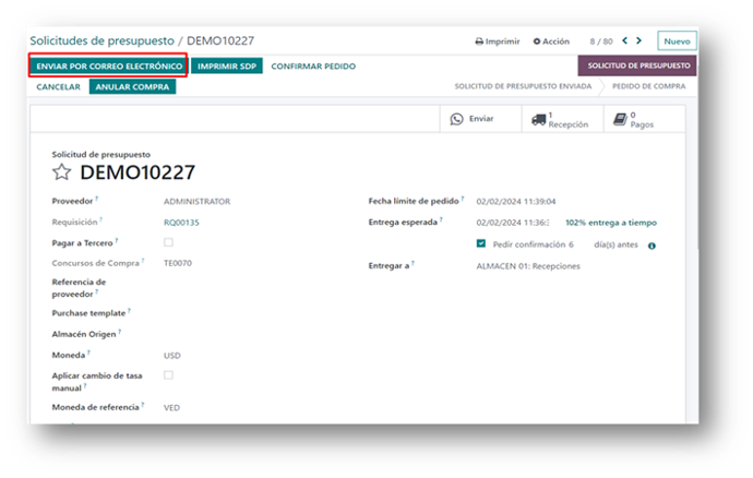 Envía solicitud de cotización al proveedor usando el correo electrónico, en un solo paso.