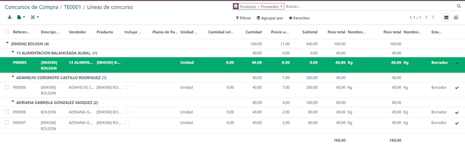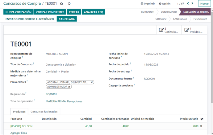 • Creación de Órdenes de Concursos: Genera solicitudes de cotización a proveedores para obtener diversas opciones de precios y condiciones..