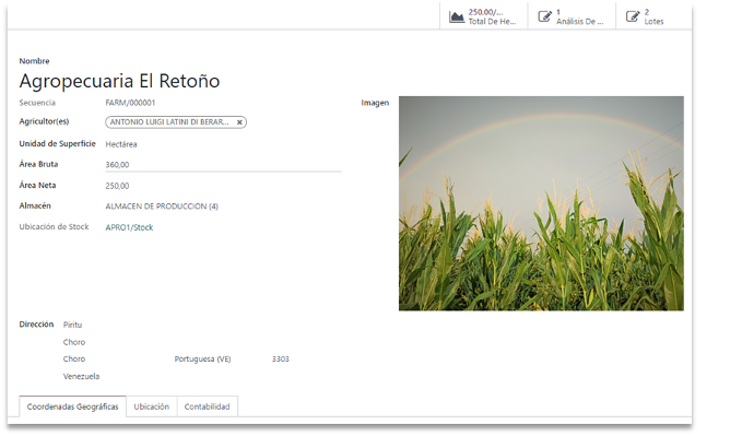 Informa sobre la unidad de producción, sus divisiones, estudios de suelo, clima, maquinarias, insumos, cultivos, en formularios sencillos e intuitivos.