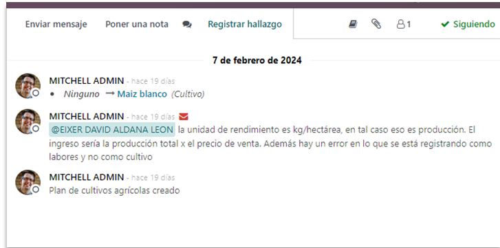 Se toma en cuenta el dueño, el encargado, los técnicos: Decida que sección o actividades pueden ver y procesar. Permita todas las comunicaciones en Odoo Gestión Agrícola.