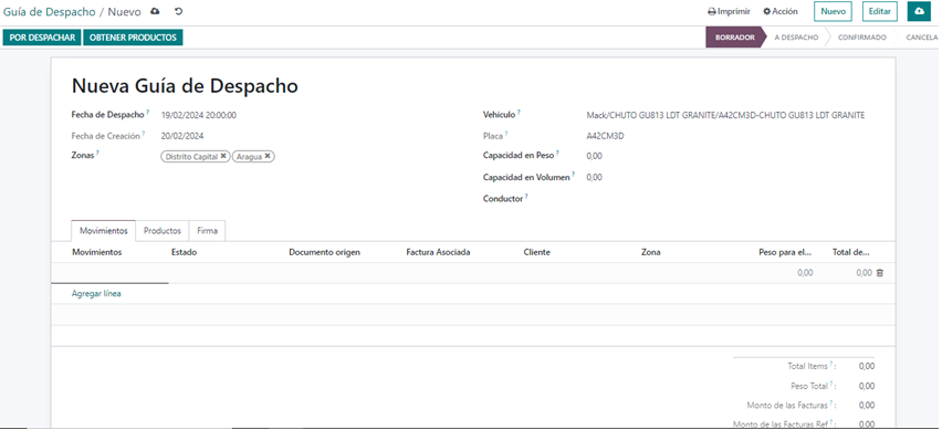 Permite consolidar cargas de uno o mas pedidos (venta o compra), para que sean despachados en una misma ruta del vehículo destinado para tal fin. Se manejan zonas, para optimizar la ruta del despacho o recogida de mercancías.