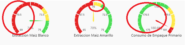 Refleja eficiencia de un producto o subproducto proveniente de la fabricación, indicando la eficiencia del mismo en los colores Verde: Dentro del rango de eficiencia deseado; Amarillo: Se deben calibrar los procesos; Rojo: Alerta, proceso defectuoso, indicador que se están generando perdidas a la organización.
