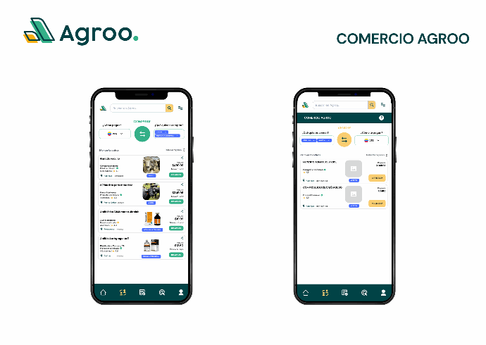 visualizas sin complicaciones al comercio AGROO, que funciona bajo la filosofía peer-to-peer (P2P) para conectarte con clientes y proveedores.